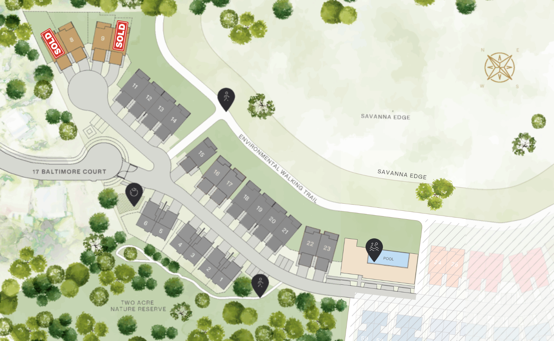 Architect designed for large families, Canopy Villas are spacious, with a large private area suitable for pets and located on a cul-de-sac offering privacy & neighbourly interaction. Facing a protected black she oak forest, nature will always feel close to home.
