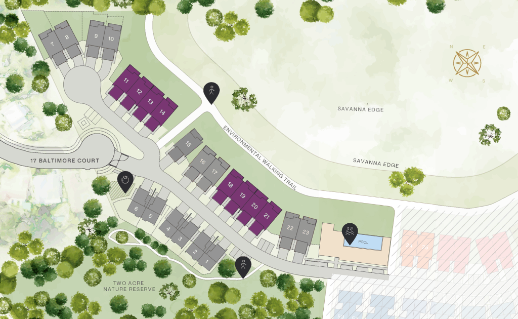 Architect designed for large families, Canopy Villas are spacious, with a large private area suitable for pets and located on a cul-de-sac offering privacy & neighbourly interaction. Facing a protected black she oak forest, nature will always feel close to home.